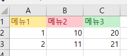 위 엑셀 파일에서 메뉴1, 메뉴2, 메뉴3 인 Header 에 메뉴4, 메뉴5 를 추가하고 싶고 Cell 의 값을 새로 바꾸고 싶다