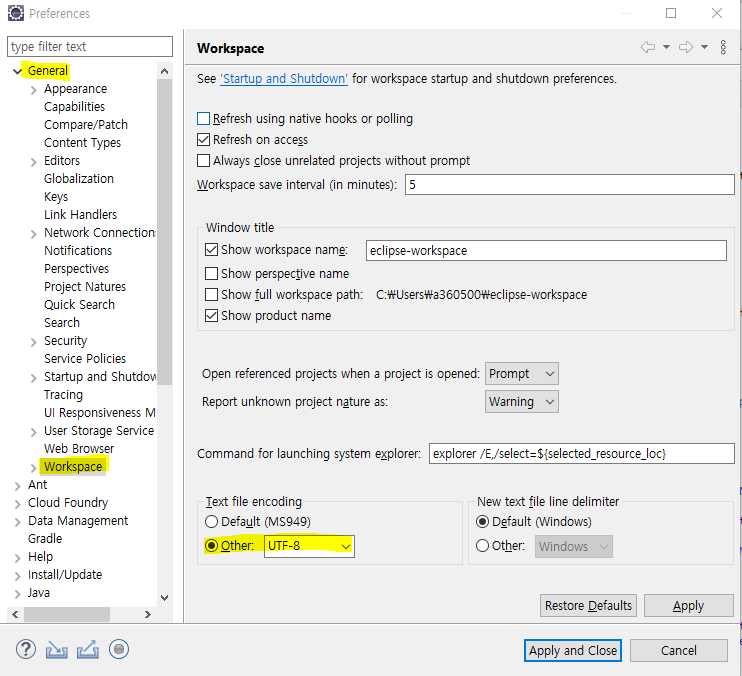 처음 Eclipse 를 설치하면 한글이 깨져보이는 경우가 있다