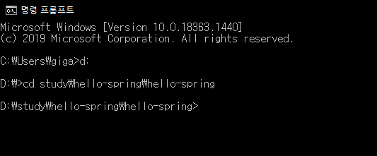 우선 cmd 를 실행하고 프로젝트를 저장한 폴더까지 이동한다